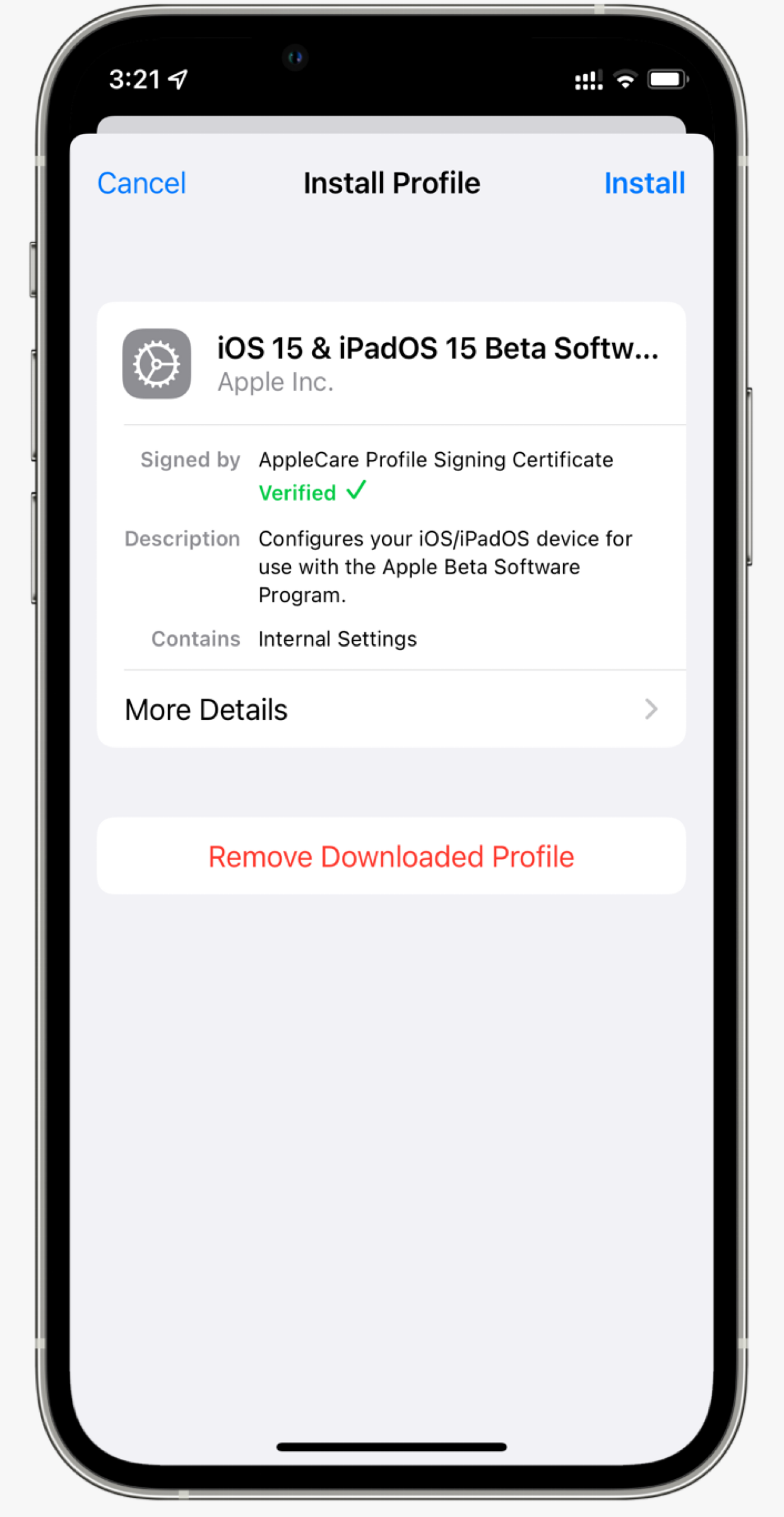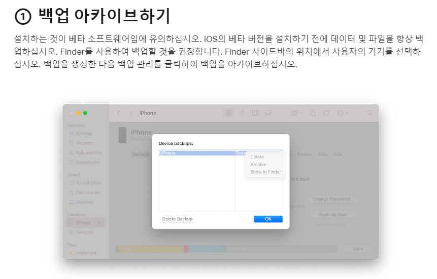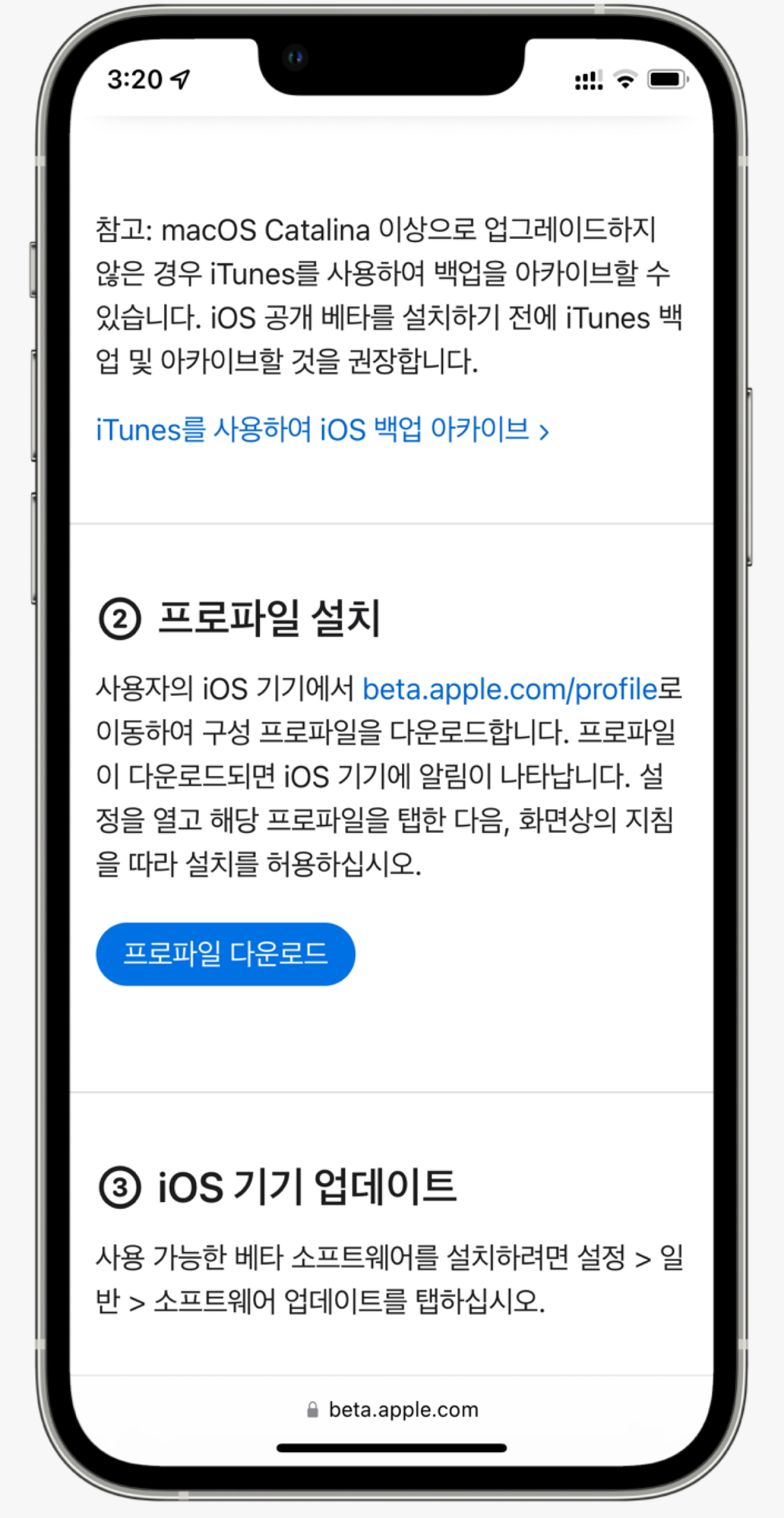백업이 완료되었으면 기기에 베타 프로파일을 다운받아 설치해야 합니다.