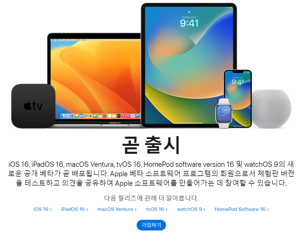 링크로 이동하시면 새로운 iOS 16, iPadOS 16, macOS Ventura 등이 곧 출시된다고 나와있네요 :)