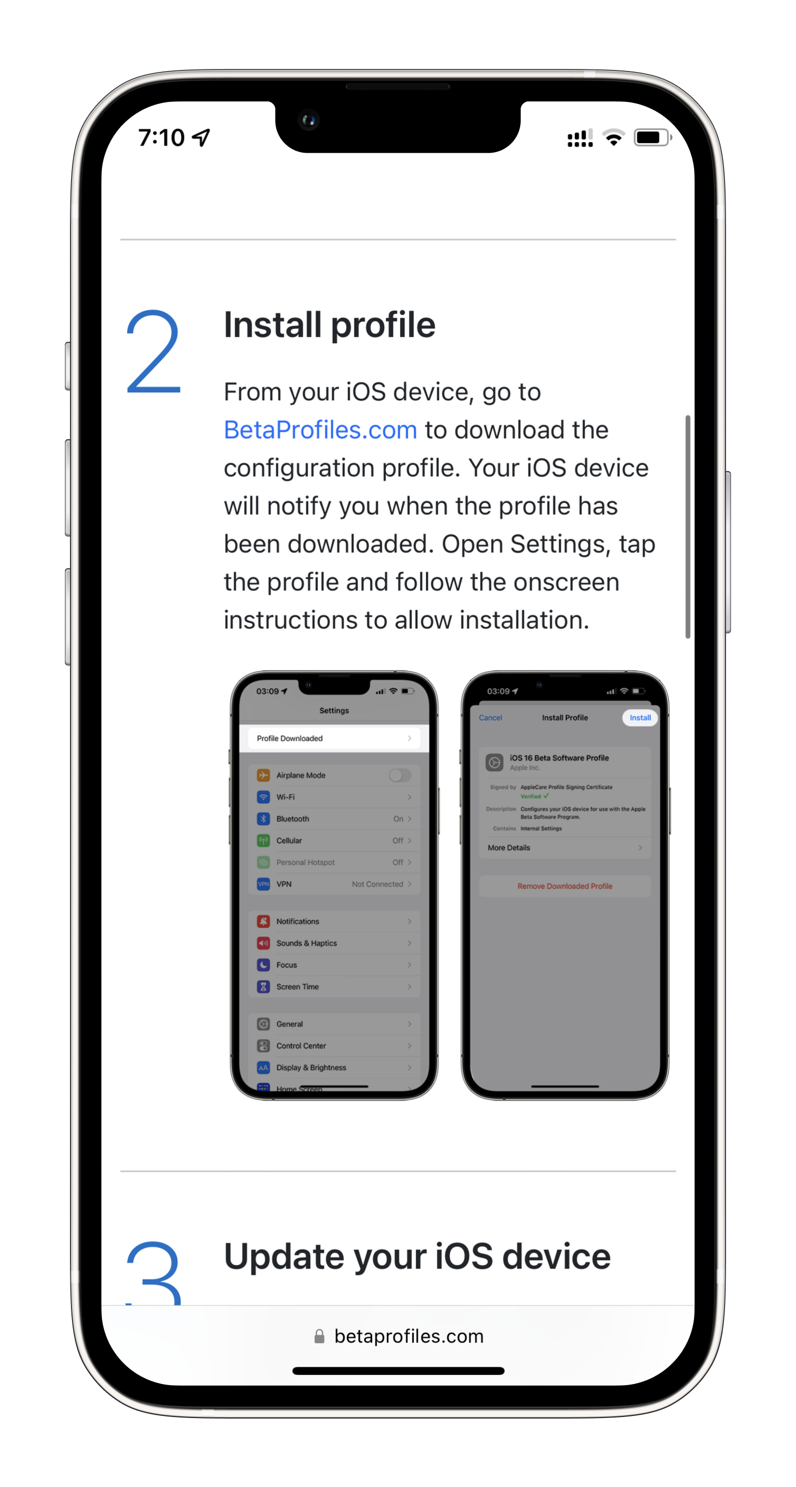 그 후 각 기기에서 베타 프로파일을 설치해주시면 되는데요,