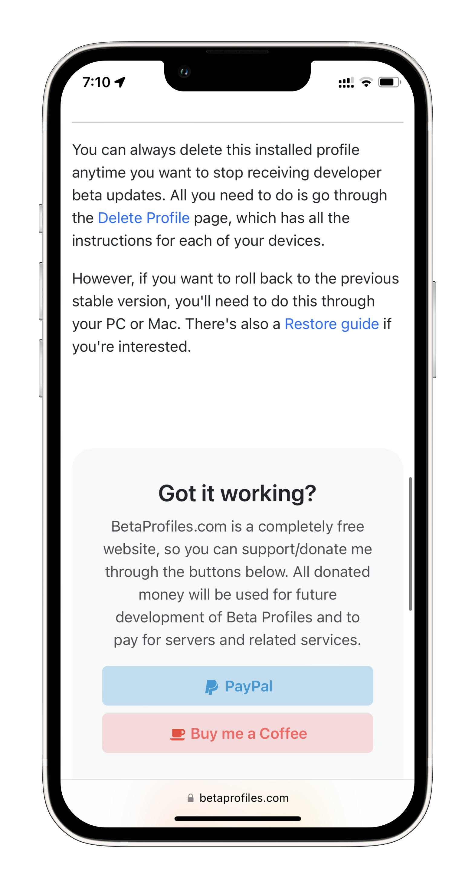위 사이트는 개발자 버전의 프로파일을 내 기기에 설치 할 수 있도록 해줍니다.