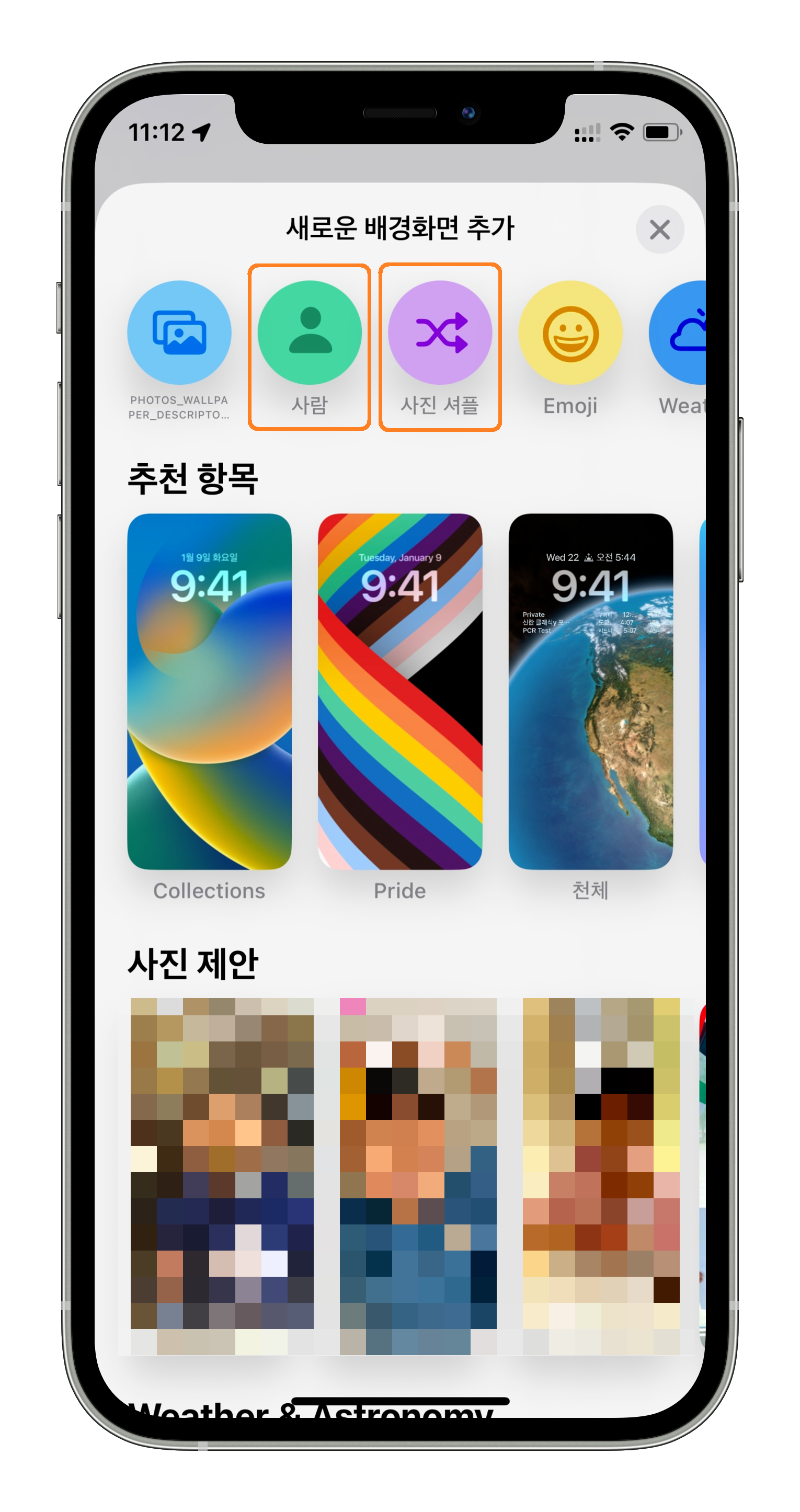 먼저 잠금화면 카테고리에서 '사람'을 선택하면 인물사진을 불러와서 선택할 수 있었는데,