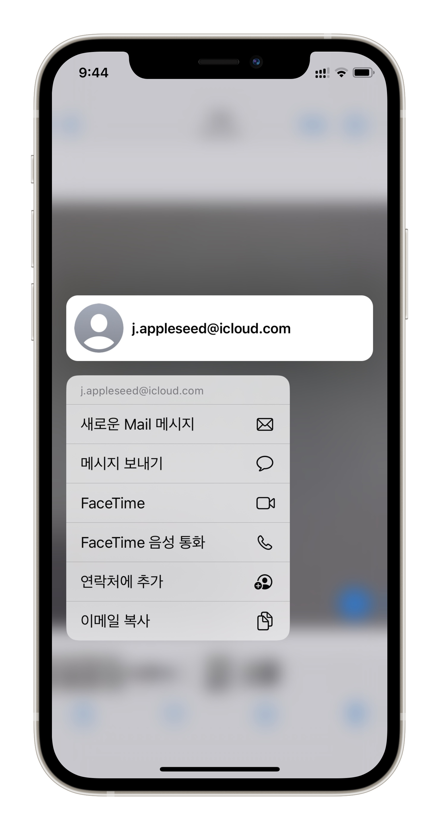 전화, 이메일, 메시지 바로 보내기