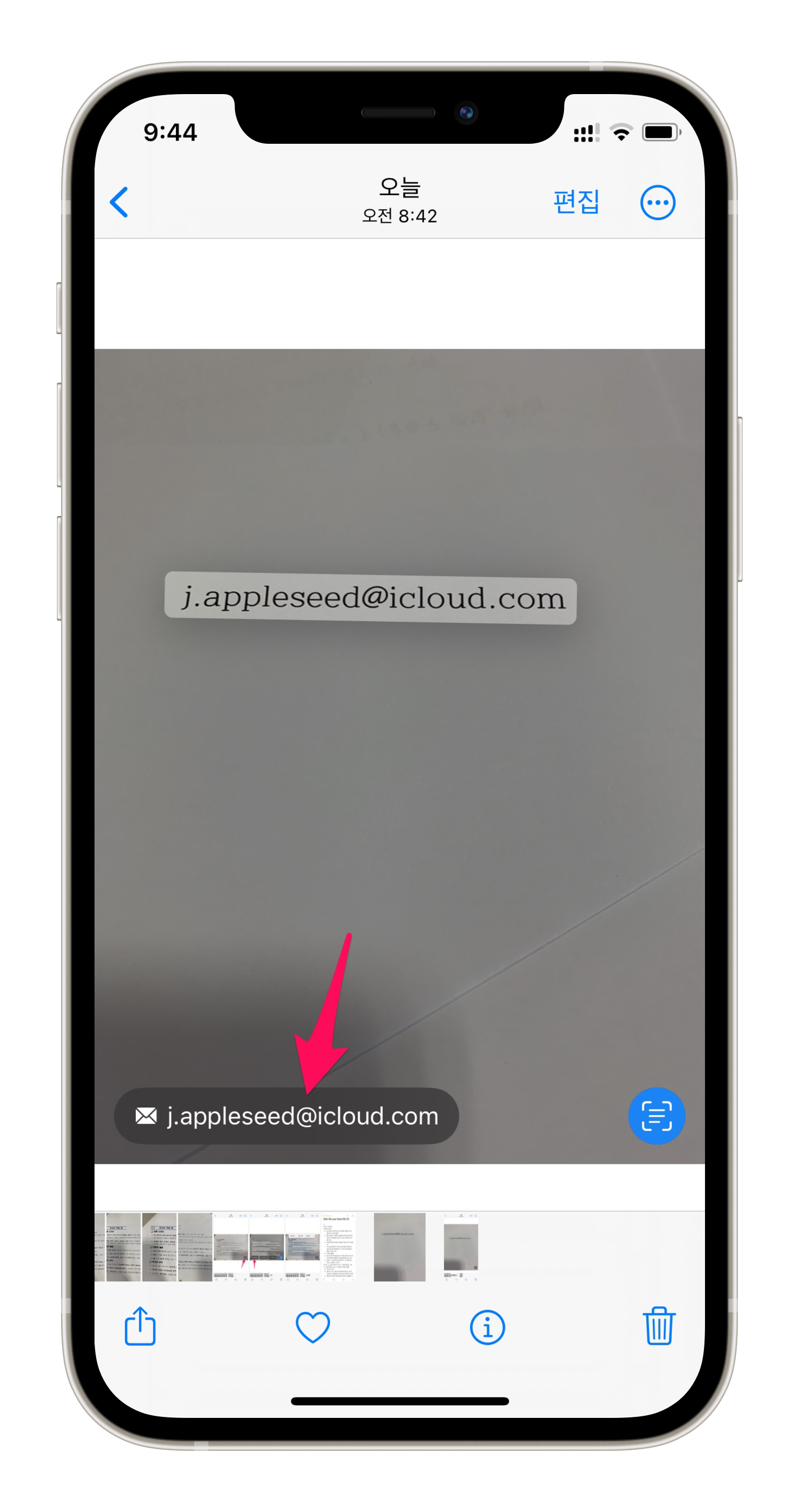 iOS 15부터 있던 기능으로 사진 속 연락처 정보를 이용해서 바로 이메일, 전화, 메시지를 보낼 수 있었죠. 사진 앱과 전화 앱을 오가며 4자리씩 번호를 외워서 입력할 필요가 없어졌습니다 ㅎㅎ