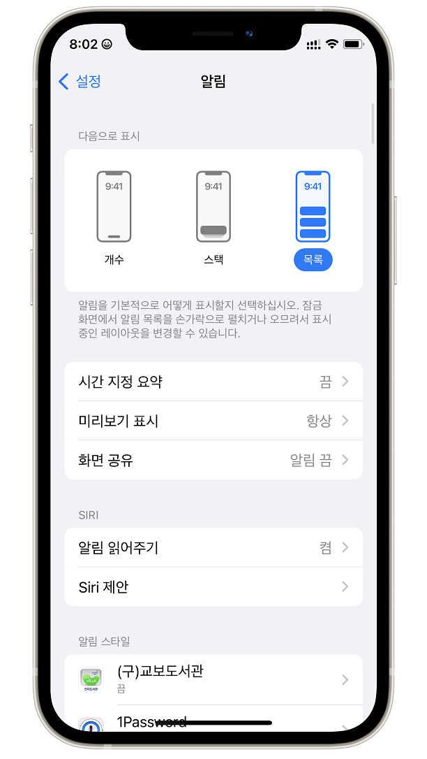 잠금화면에서 알림을 표시하는 방법을 설정 어플에서 변경할 수 있게 되었습니다. iOS 16에서는 알림이 상단이 아닌 하단에 노출되는 데요. 화면 하단에 알림을 어떻게 띄울지 선택할 수 있습니다.