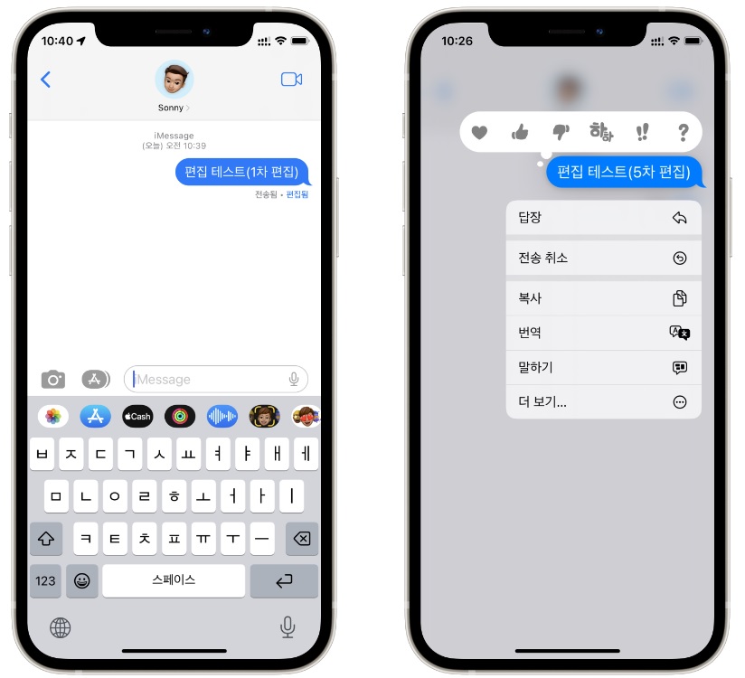 [iOS 16 베타 사용기] 메시지 보낸 문자 메시지 전송 취소, 편집(수정)하기