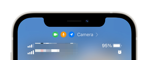 애플은 원래 위 그림처럼 아이폰 우측 상단에 초록색, 주황색으로 카메라, 마이크의 활성 상태를 표시했는데요. 두 펀치홀 사이의 공간에 이 상태표시기가 배치될 가능성이 있어 보입니다.